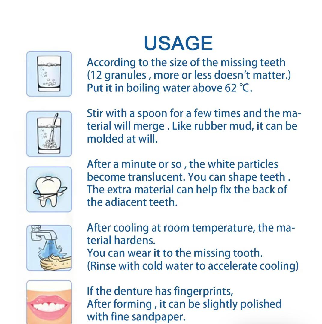 Say goodbye to missing, broken, or gappy teeth with our revolutionary moldable false teeth kit. Safe, easy to use, and gives you instant confidence!